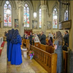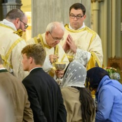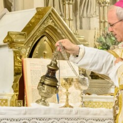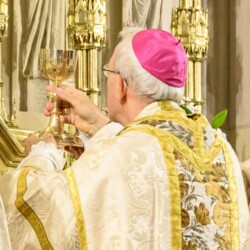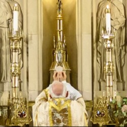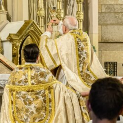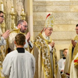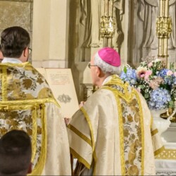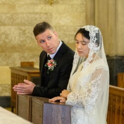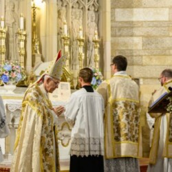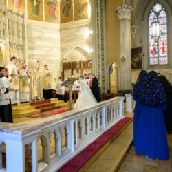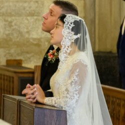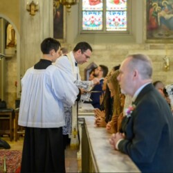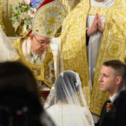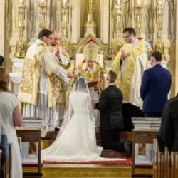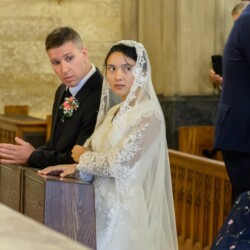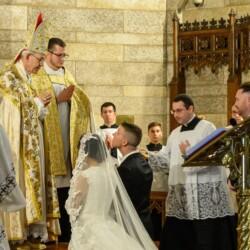 | “We were so honored to have Bishop Schneider visit St. Mary’s to celebrate a Pontifical Nuptial on September 21, 2024. Although our purpose for photographing the beautiful ceremony was the the Mass rather than the wedding itself, we certainly found some intimate moments to capture! We sincerely thank the happy couple, who were not our parishioners, for giving us permission to share the images of their beautiful day! May God watch over them and shower them with His many blessings!” – Claire Gruneberg, St. Mary’s parish secretary and official photographer. |