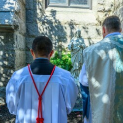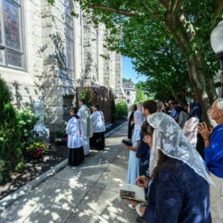 The statue was blessed on the Feast of the Sacred Heart. After the 9:00 am Mass, we processed to the statue chanting the Sacred Heart Litany and sang In Paradisum at the memorial. Prayer cards were created with our beloved priests names and are now in the hands of our faithful to pray for them in love and gratitude. Our cherished priests are with us always!