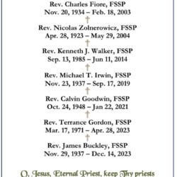 Any of our sister FSSP parishes interested in the prayer card are invited to contact St Mary’s.