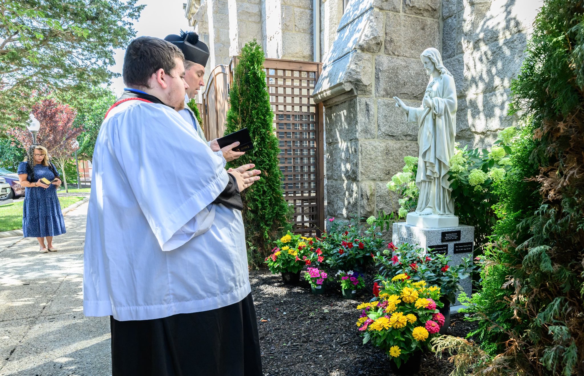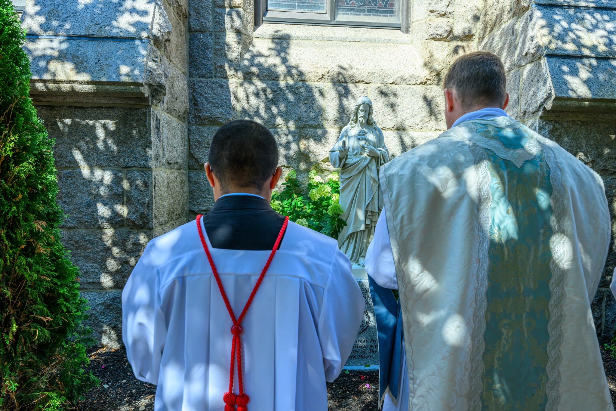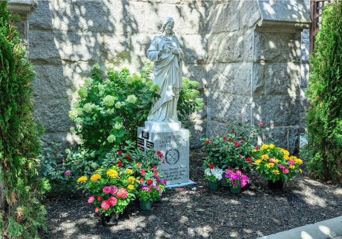 The statue was blessed on the Feast of the Sacred Heart. After the 9:00 am Mass, we processed to the statue chanting the Sacred Heart Litany and sang In Paradisum at the memorial. Prayer cards were created with our beloved priests names and are now in the hands of our faithful to pray for them in love and gratitude. Our cherished priests are with us always!