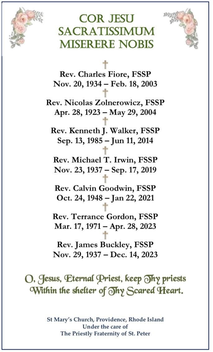 Any of our sister FSSP parishes interested in the prayer card are invited to contact St Mary’s.