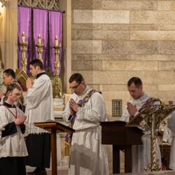 † O Almighty and Eternal God, look upon the Face of Thy Christ, and for love of Him Who is the eternal High-priest, have pity on Thy priests. Remember, O most compassionate God, that they are but weak and frail human beings. Stir up in them the grace of their vocation which is in them by the imposition of the Bishop’s hands. Keep them close to Thee, lest the enemy prevail against them, so that they may never do anything in the slightest degree unworthy of their sublime vocation.